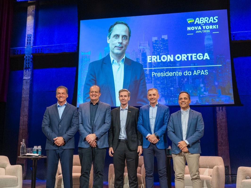 Presidente da APAS, Erlon Ortega media painel de evento da ABRAS, em Nova York
