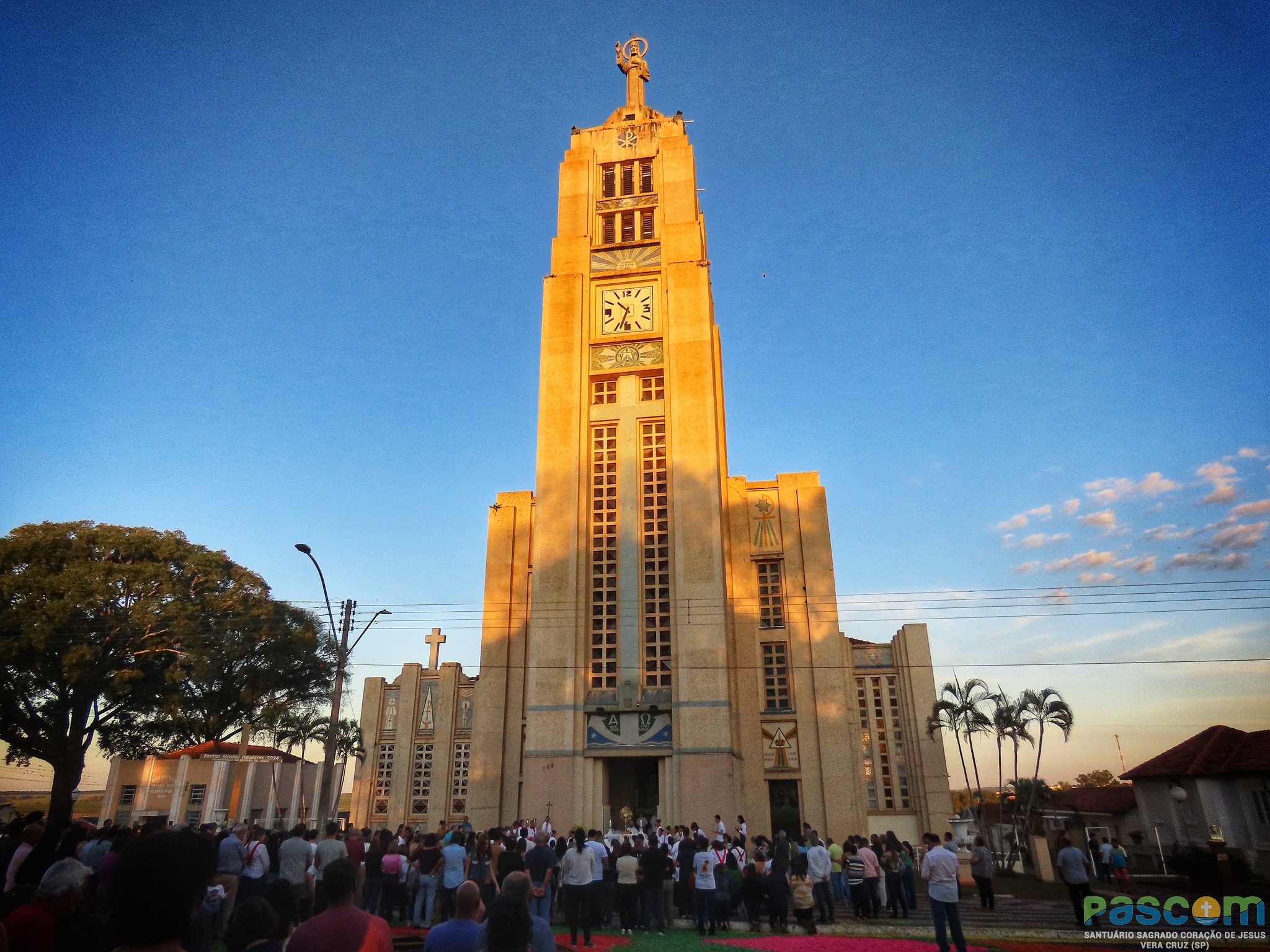 O santuário é considerado um marco histórico e arquitetônico de Vera Cruz e de toda a Diocese de Marília. Construído pela comunidade sob liderança do saudoso Monsenhor Florentino Santamaria, sacerdote espanhol que permaneceu 50 anos à frente da paróquia, o templo carrega forte simbolismo religioso. “A imagem de seis metros do Sagrado Coração de Jesus, no topo da torre, aponta uma mão para seu Sagrado Coração e, com a outra, abençoa todo o povo de Vera Cruz e os peregrinos que visitam nossa cidade”, ressaltou padre Maurício.